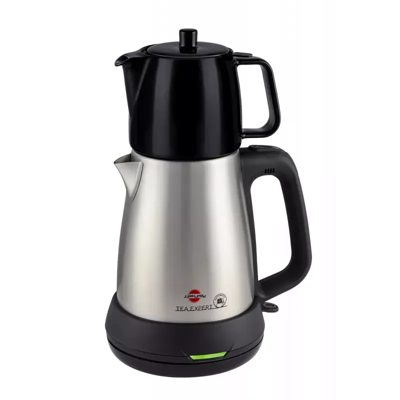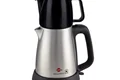 داراي کتري استیل مدرج باظرفیت1.8لیتر دارای قوری چینی با ظرفیت 0.7لیترمجهز به فیلتر با قاب پلاستیکی و مش فلزی دارای لامپ نشانگر سبز و نارنجی روی پایه برای نمایش وضعیت جوش ، 2200 وات، استيل،مشكي، ظرفيت كتري 1.7 ليتر، ظرفيت قوري0.7 ليتر، جوش آوردن آب كمتر 4 دقيقه، داراي المنت مخفي و قطع كن اتوماتيك، مجهز به قطعات الكتريكي مرغوب با برند Strix انگليس